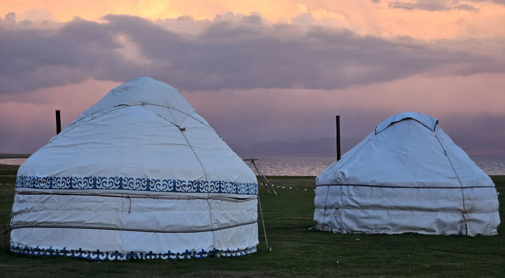 Arrive in Bokonbayevo by afternoon and, if available, visit a local Eagle Hunter’s residence for an introduction to the centuries-old tradition of golden eagle hunting. Later, check in to an exclusive yurt camp set against the lake and mountain scenery. Experience refined nomadic comfort with tastefully furnished yurts, warm hospitality, and serene surroundings. Unwind with a lakeside walk, sunset views, and a traditional yet elevated Kyrgyz dinner prepared with local ingredients.